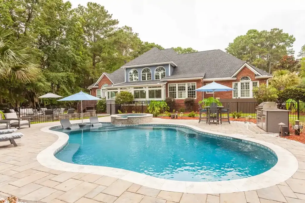 We transformed this outdoor space with a serene pool design, featuring custom elements like a built-in spa and elegant lighting. Our expert team created a peaceful and inviting retreat, perfect for relaxation and entertainment.